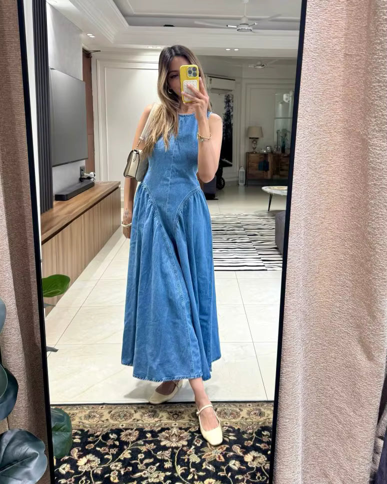 “La robe en denim est un vrai coup de cœur. Décontractée mais féminine. Je l’ai portée avec des ballerines comme je suis assez grande... magique.”